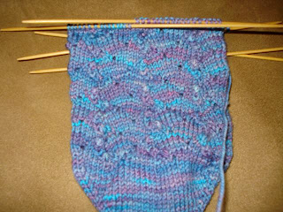 And I have been knitting. Yesterday I was up until 3 in the morning just piddling around. At 4 minutes after midnight I cast on a sock for June Junkies Charity Knitting, a subgroup of the Malabrigo Junkies group on Ravelry.